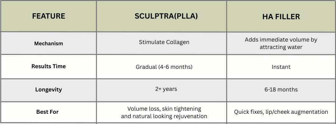 Long-Term Results (Up to 2+ Years) Unlike HA fillers (which last 6–18 months), Sculptra’s collagen-building effects can last 2 years or more. Collagen degrades slowly, so results fade gradually.